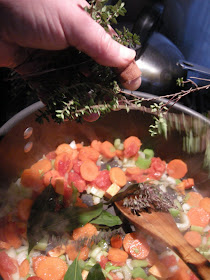 I didn't follow Reeni's instructions exactly, but, you already know that.. I used about 1.44 pounds of carrots, a bunch of garlic cloves, and a big sprig of thyme.